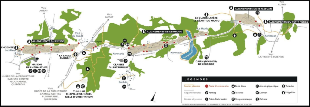 Kiedy chodziliśmy między megalitami w Carnac, wszystko wyglądało dość prosto… kamienie, rzędy, trochę chaosu, trochę przypadku. Fajnie, klimatycznie, ale bez jakiegoś wielkiego „wow”. I dopiero później, kiedy człowiek zacznie się temu przyglądać trochę dokładniej (najlepiej z góry albo na schemacie), nagle okazuje się, że to wszystko ma ręce i nogi. I to całkiem dobrze poukładane. Bo te słynne megality to nie jest jedno miejsce. To kilka ogromnych zespołów kamieni, które razem tworzą coś w rodzaju jednej, długiej instalacji ciągnącej się przez kilka kilometrów.