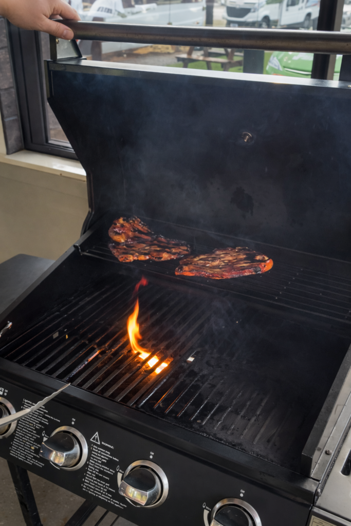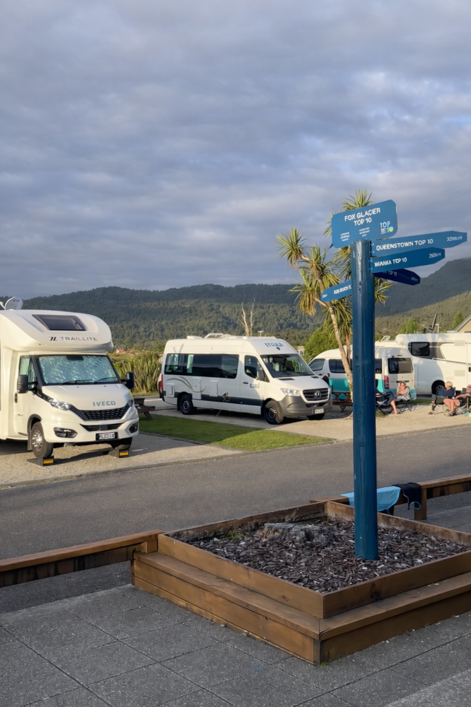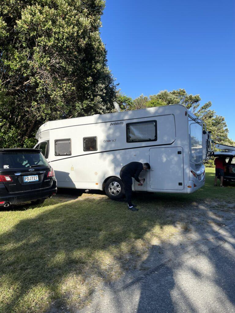Jedziemy na nasz dzisiajszy nocleg, czyli na Fox Glacier Top 10 Holiday Park & Motels. Mamy jeszcze trochę czasu do wieczora, więc robimy sobie ulubione jedzonko… sterki wołowe na grillu. Przyrządza je oczywiście nasz człowiek od zadań specjalnych… Norbiś 😀