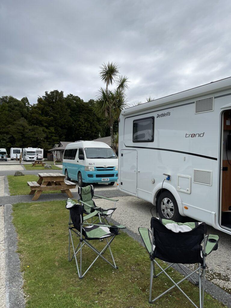 Muszę przyznać jedno, że infrastruktura na kempingu jest super. Stanowiska na kampery z podłączeniem do prądu, czyściutkie kibelki i prysznice, a poza tym wspólna kuchnia z pełnym urządzeniem i wyposarzeniem dostępnym dla wszystkich oraz obszerna wspólna jadalnia. Do tego na zewnątrz, ale pod zadaszeniem – gazowe grille… po prostu „szczęka opada”.