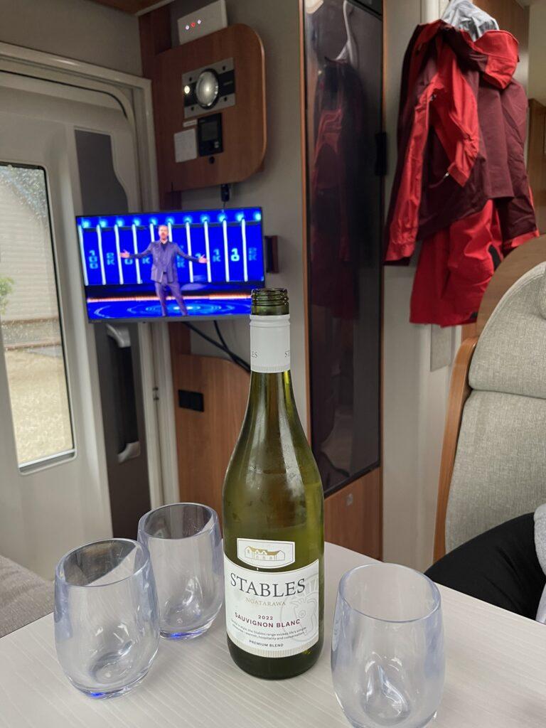 Po obiedzie wróciliśmy na kemping. Deszcz wciąż krążył gdzieś w tle, więc resztę dnia spędziliśmy spokojnie, bez wielkich planów. Trochę pracy, trochę rozmów, a wieczorem już tylko chill przy kieliszku nowozelandzkiego wina. Takie chwile są w podróży bezcenne… nic spektakularnego, a jednak dokładnie o to chodzi… mógłbym tak spędzać czas całymi godzinami.