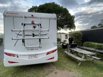 W takich to właśnie okolicznościach przyrody dotarliśmy do naszego dzisiejszego noclegu, czyli do Athenree Hot Springs & Holiday Park. Myśleliśmy wpierw, że załapiemy się na jakieś wolne miejsce na Bowentown Freedom Camping, jednak nie udało się „januszowanie” 😀
