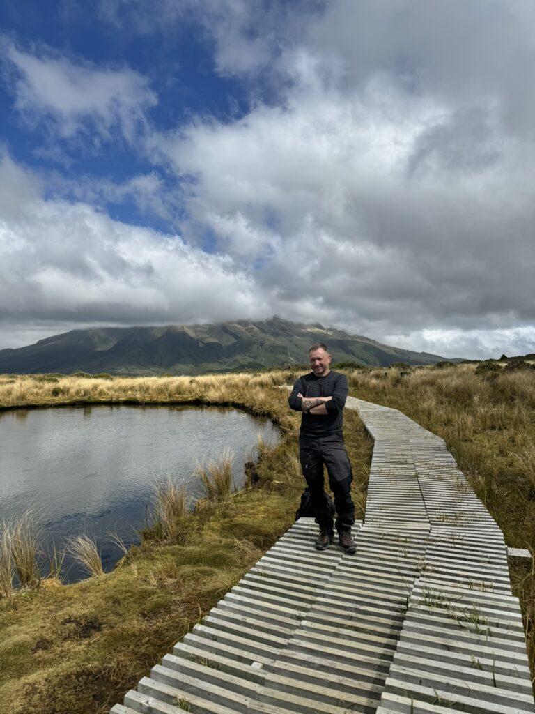 Pouakai Circuit Reflective Tarn – tego właśnie miajsca rozpościera się przepiekny widok na najpiekniejszy (moim zdaniem) wulkan Nowej Zelandii, a może nawet na świecie, na Mount Taranaki/Egmonton.