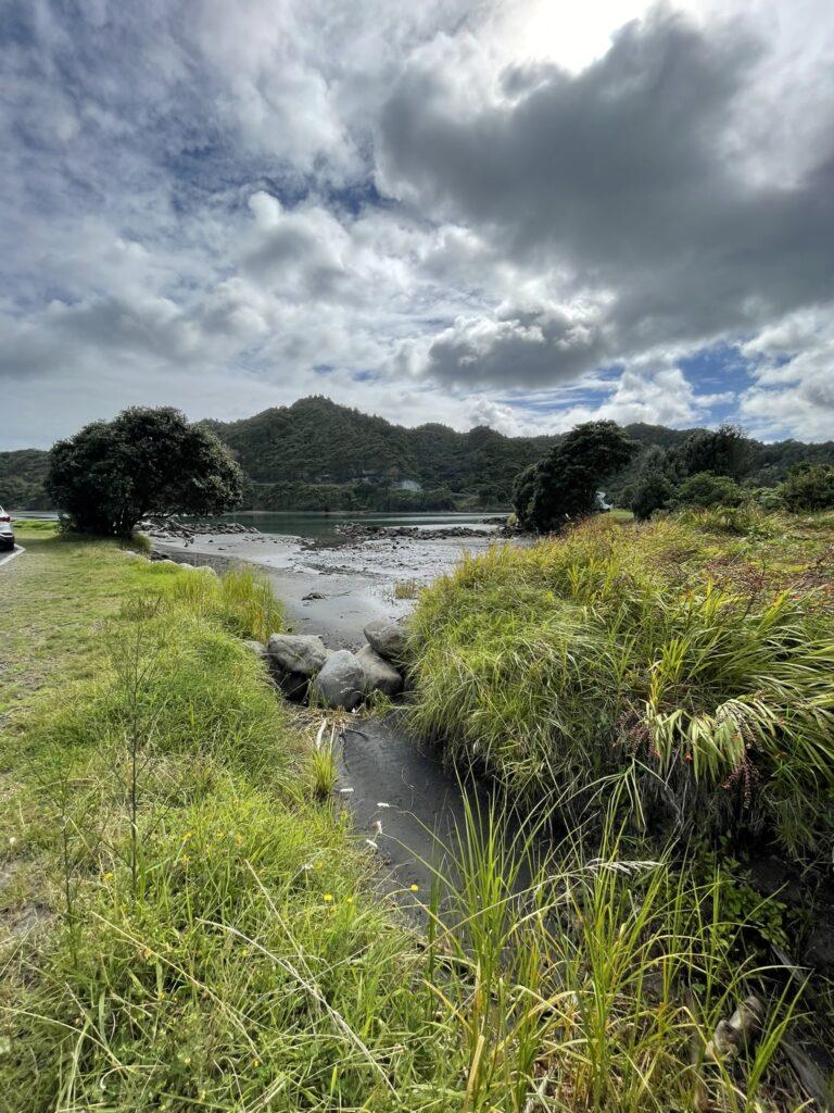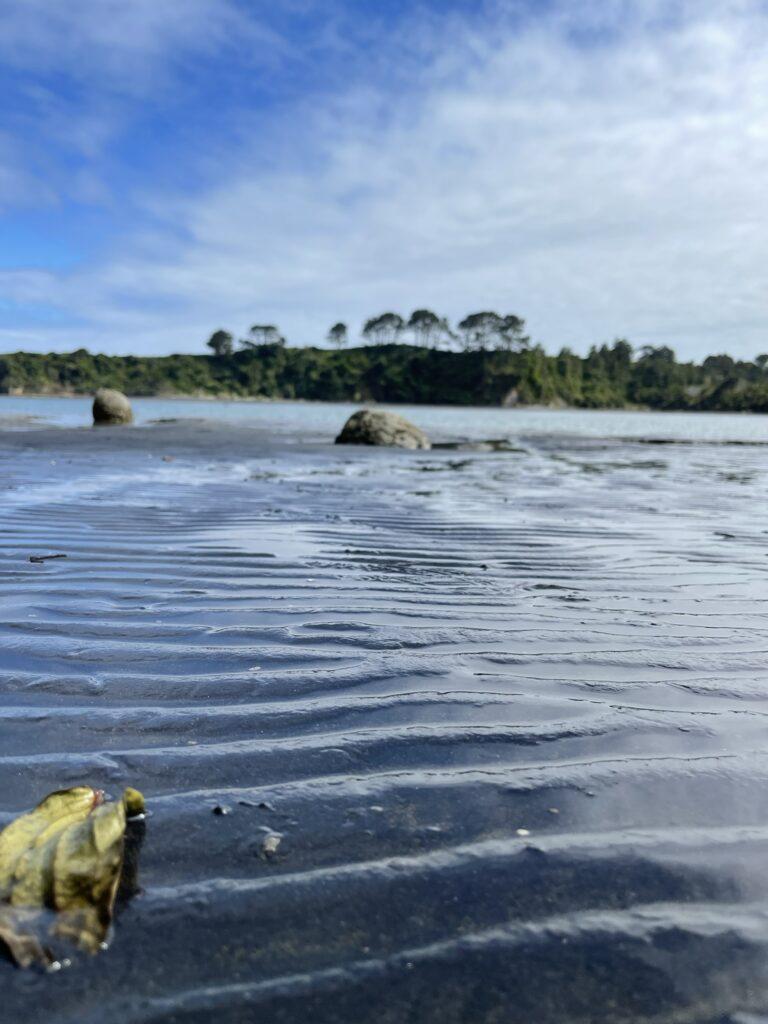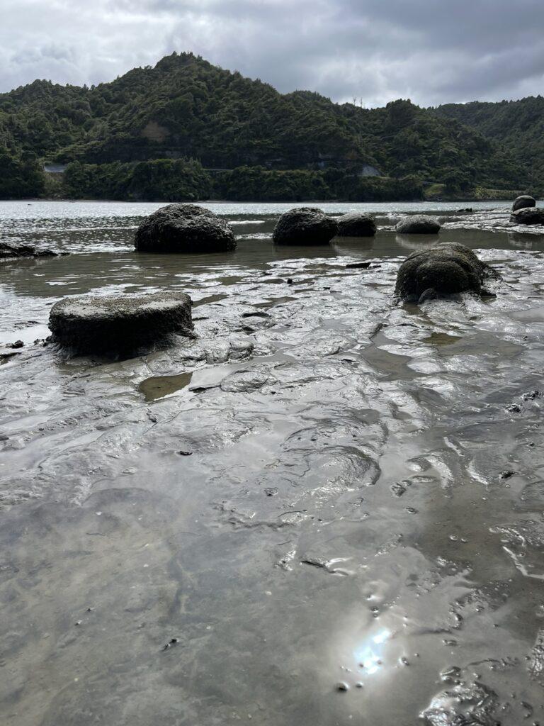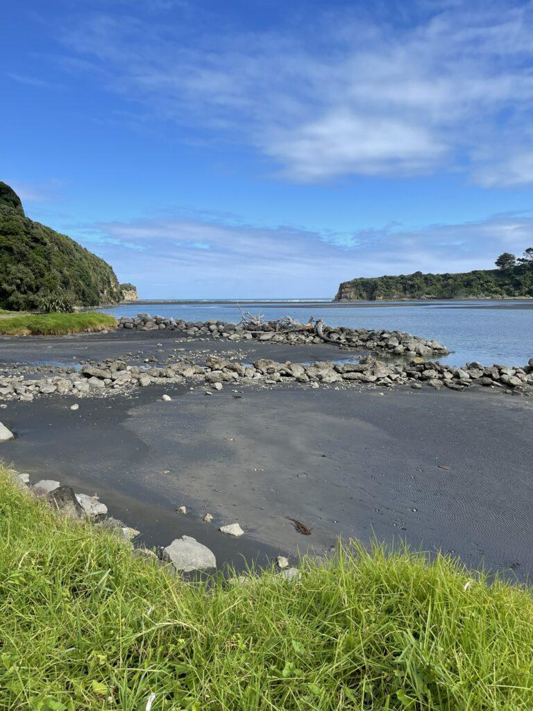 Można do nich dojść pieszo, ale tylko podczas odpływu – i ten mały szczegół przegapiliśmy. Dojechaliśmy na miejsce, gdy zaczynał się właśnie przypływ i dojście suchą nogą, a może nawet nie mocząc krótkich spodenek, stało się już niemożliwe. Zatem popodziwialiśmy okolicę i udaliśmy się do miejsca naszej następnej – dosłownie WIELKIEJ – atrakcji w pobliżu New Plymouth, do trekingu na Pouakai Circuit Reflective Tarn.
