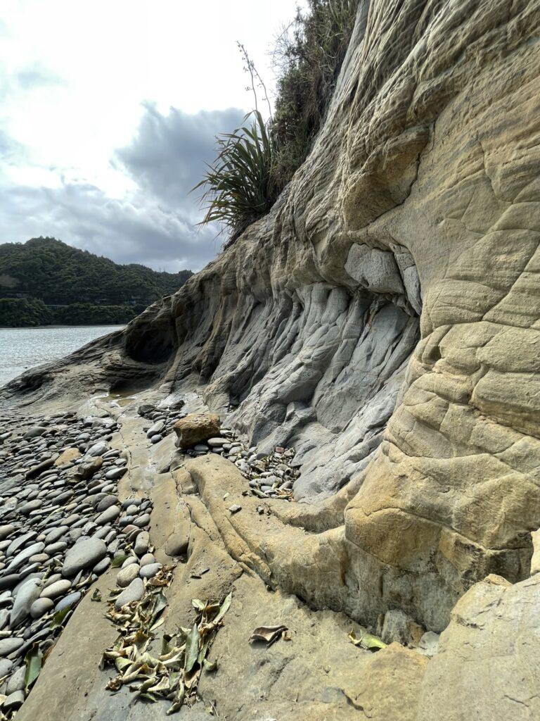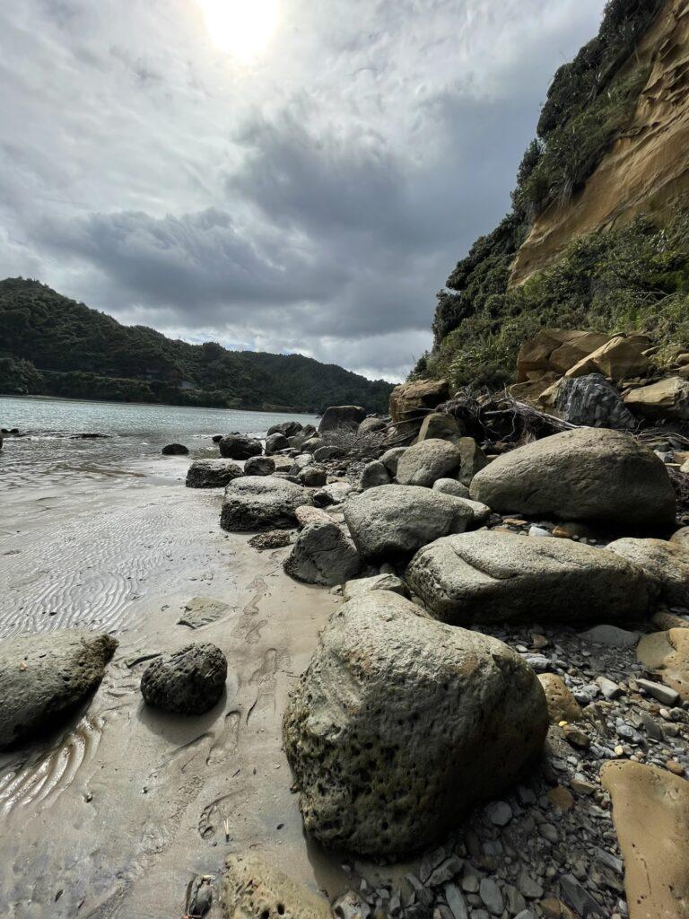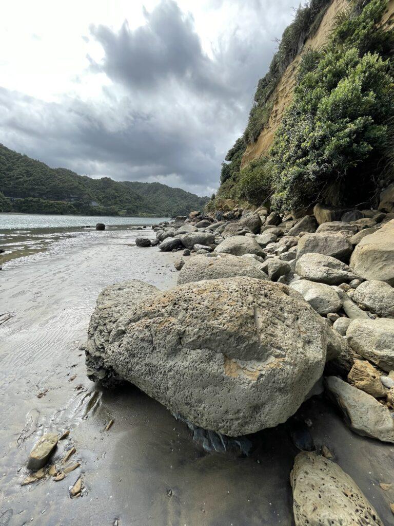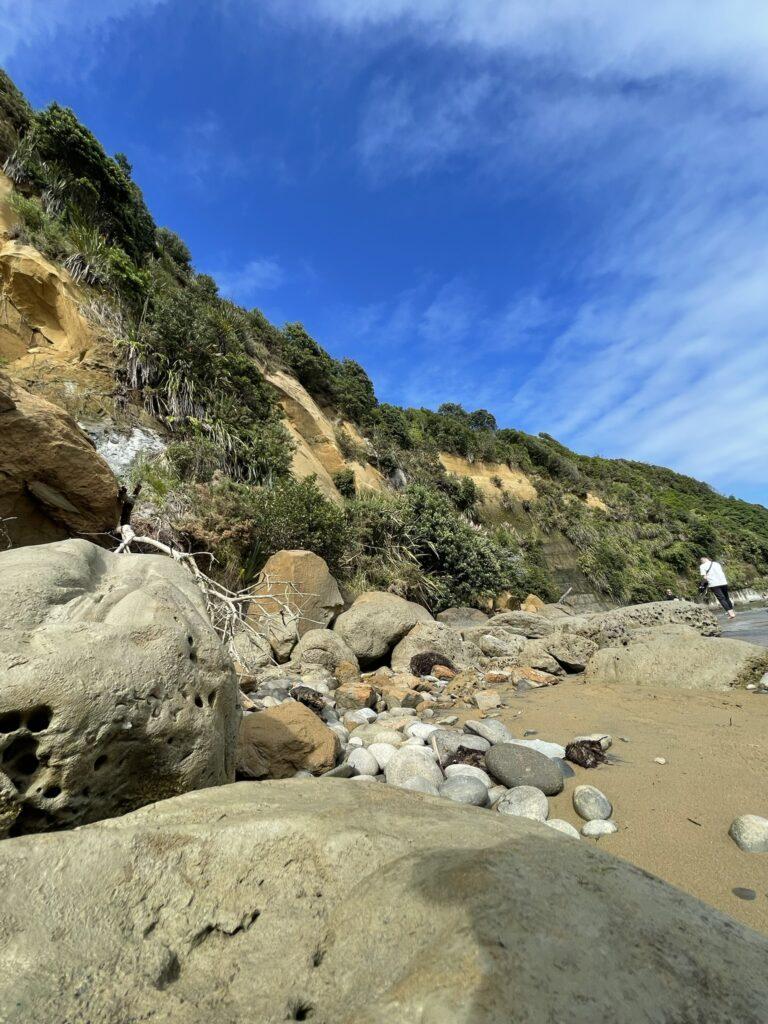 Można do nich dojść pieszo, ale tylko podczas odpływu – i ten mały szczegół przegapiliśmy. Dojechaliśmy na miejsce, gdy zaczynał się właśnie przypływ i dojście suchą nogą, a może nawet nie mocząc krótkich spodenek, stało się już niemożliwe. Zatem popodziwialiśmy okolicę i udaliśmy się do miejsca naszej następnej – dosłownie WIELKIEJ – atrakcji w pobliżu New Plymouth, do trekingu na Pouakai Circuit Reflective Tarn.