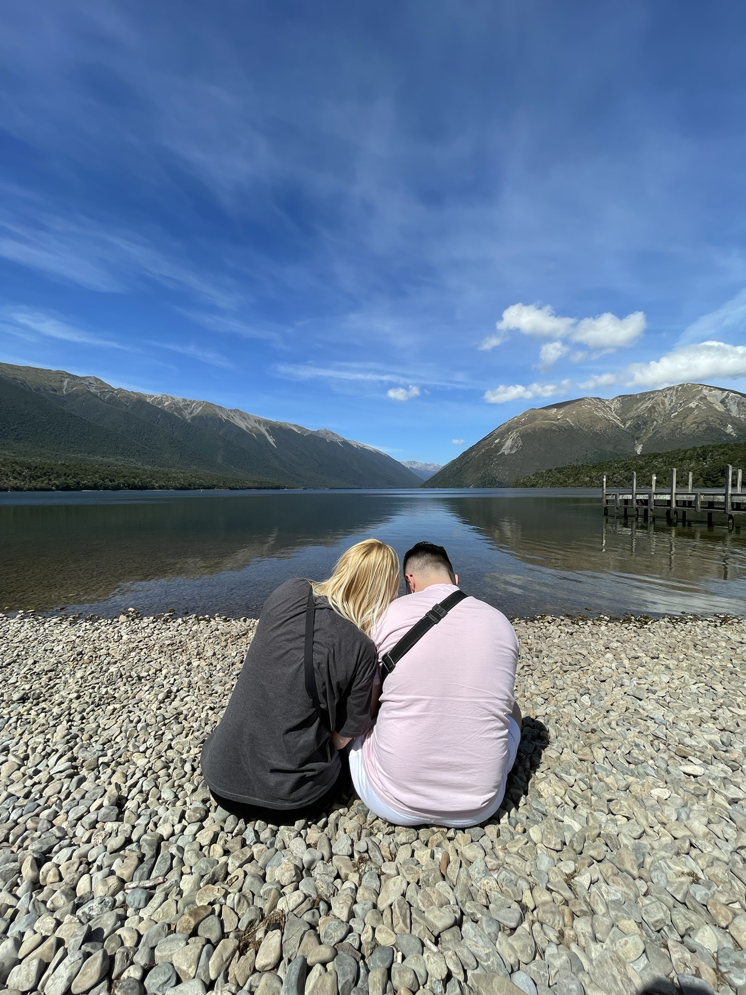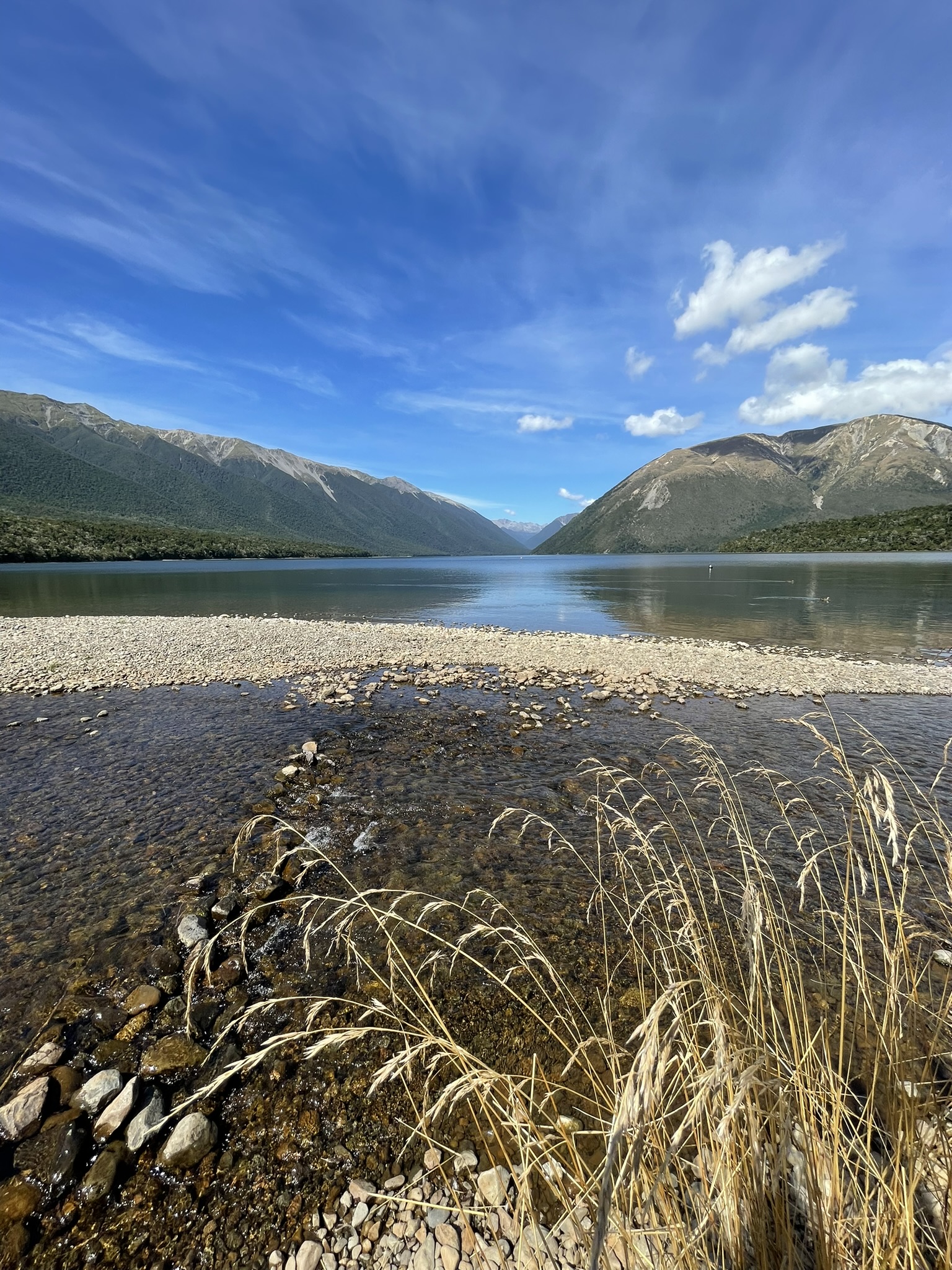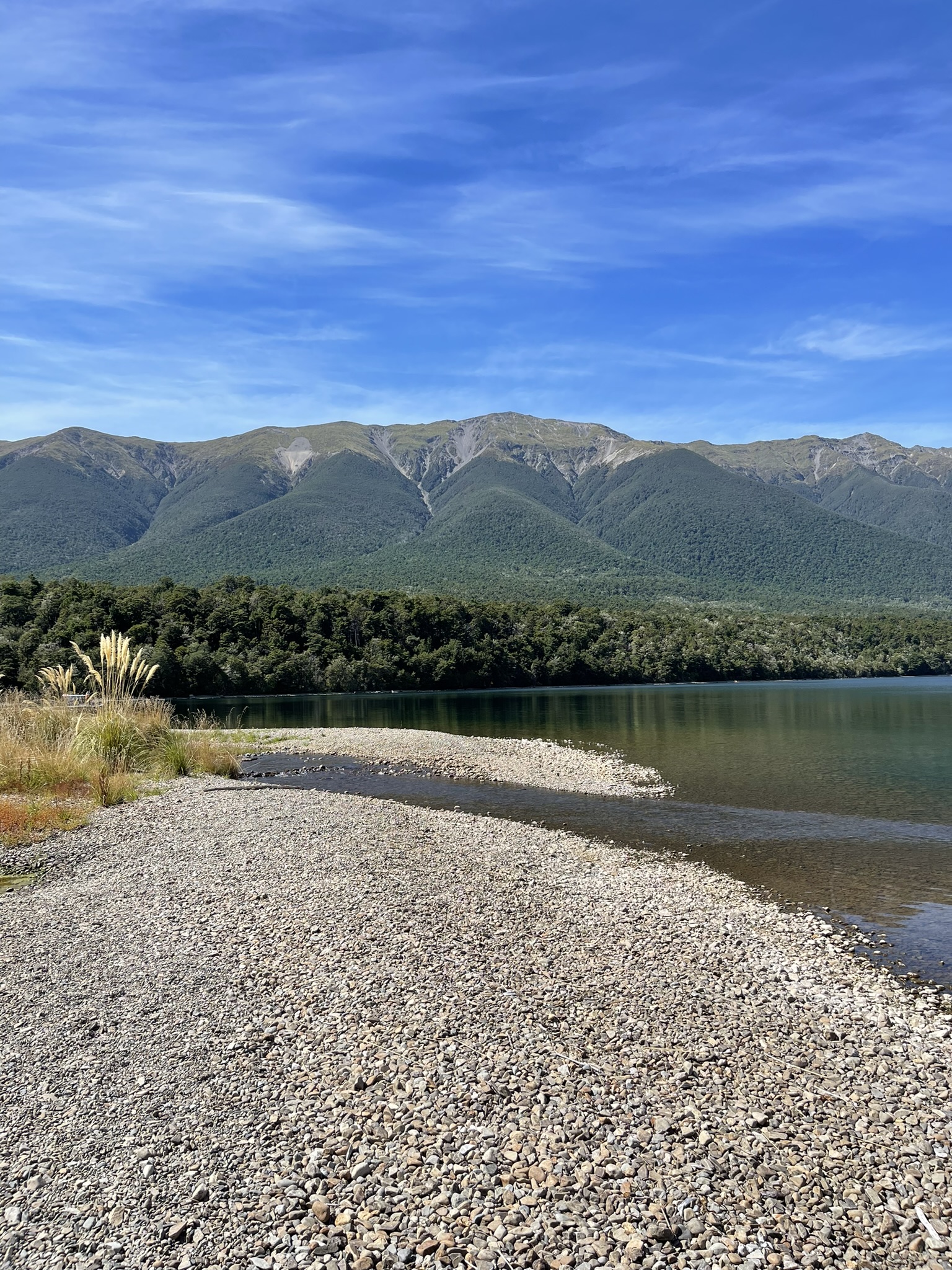 Na Lake Rotoiti Jetty zatrzymaliśmy się na chwilę odpoczynku w drodze do Punakaiki Rocks, słynnych Skał Naleśnikowych. Plan był prosty… krótki postój i dalej w trasę. Wyszło jak zwykle… zostaliśmy dłużej, niż zakładaliśmy, bo gdy weszliśmy na drewniany pomost, od razu poczuliśmy, że to miejsce nie jest stworzone do pośpiechu. Tafla jeziora była niemal nieruchoma, odbijała góry i linię lasu tak wyraźnie, że trudno było odróżnić odbicie od rzeczywistości, a woda tak przejrzysta, że było widać dno na metry w głąb. Staliśmy tak w bezruchu na końcu pomostu i po prostu patrzyliśmy… bez sprawdzania czasu… bez rozmów… po prostu… kontemplując ten widok. Lake Rotoiti było dla nas spokojnym przystankiem w drodze… takim który zostaje w pamięci na dłużej.