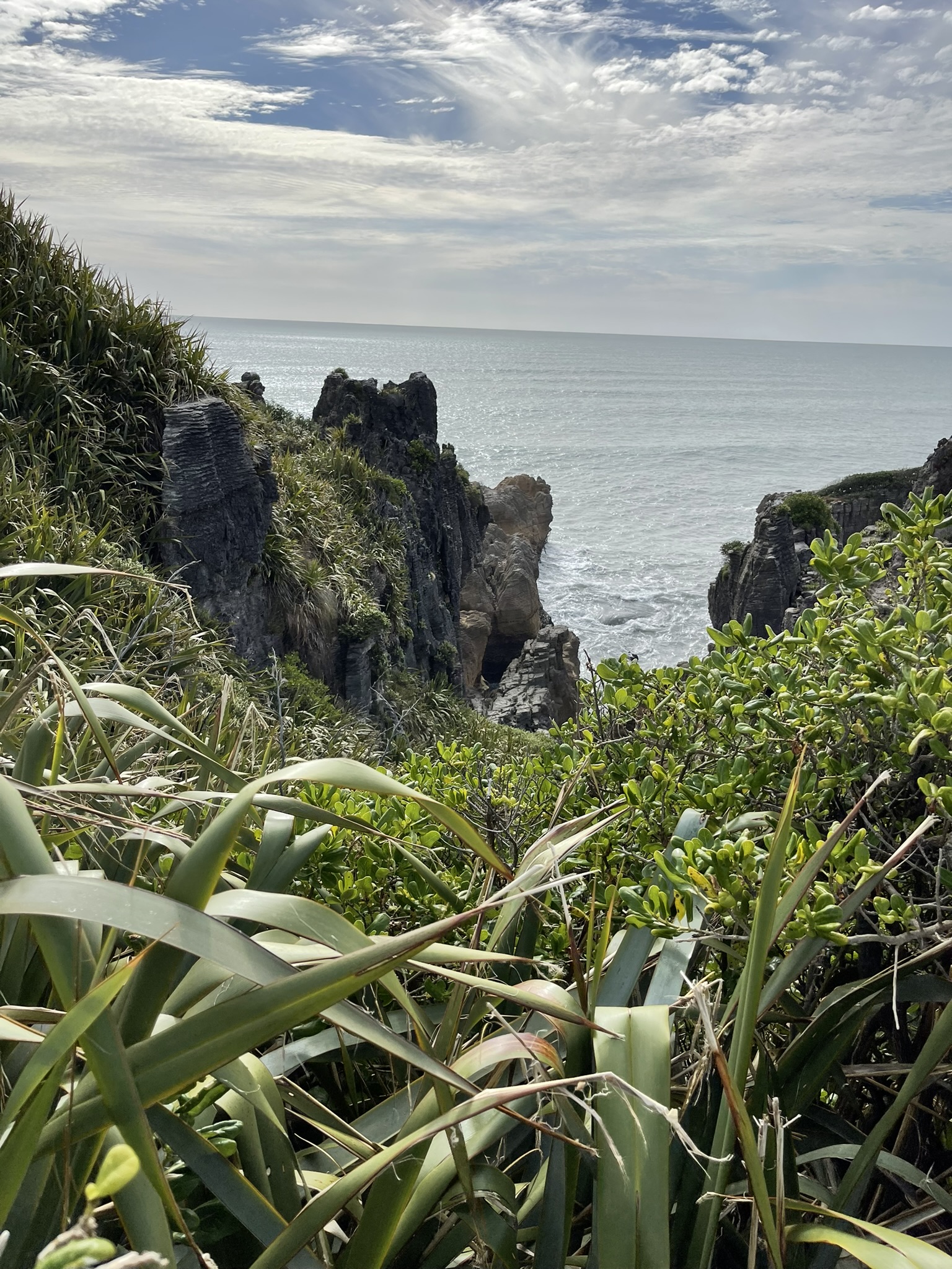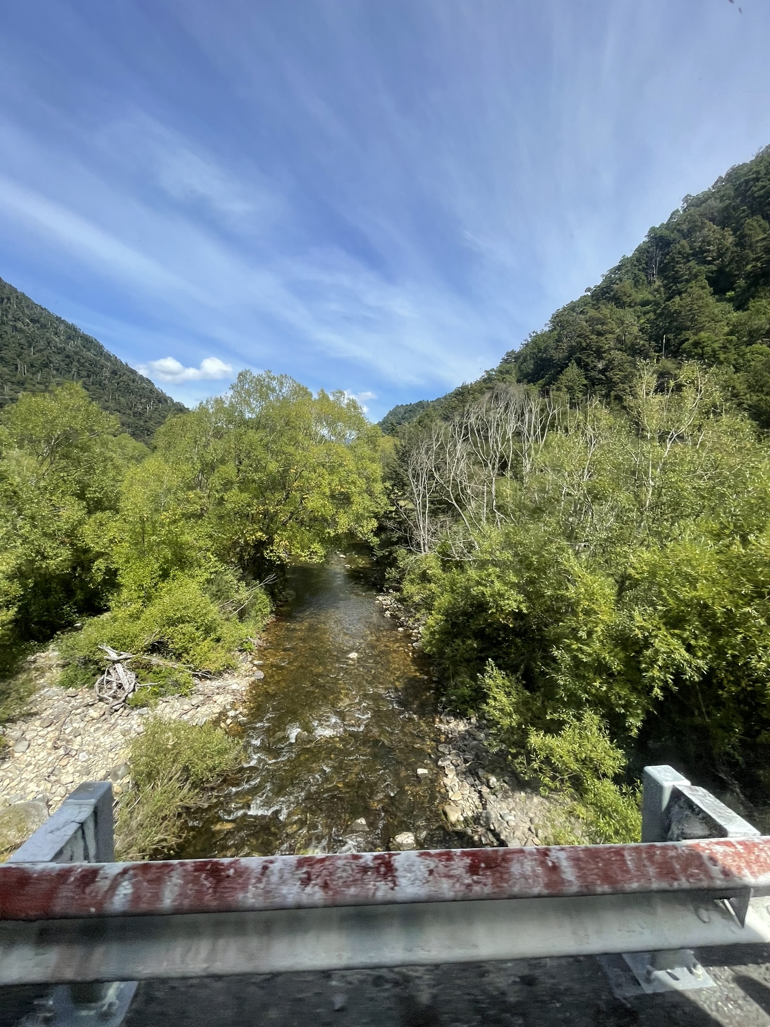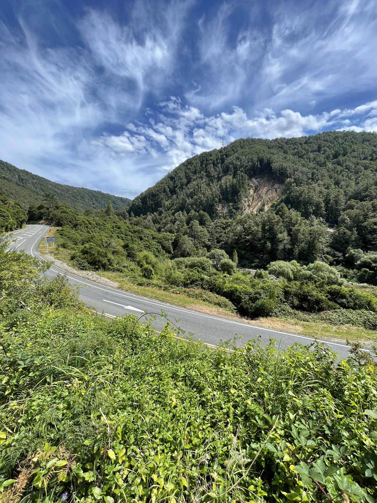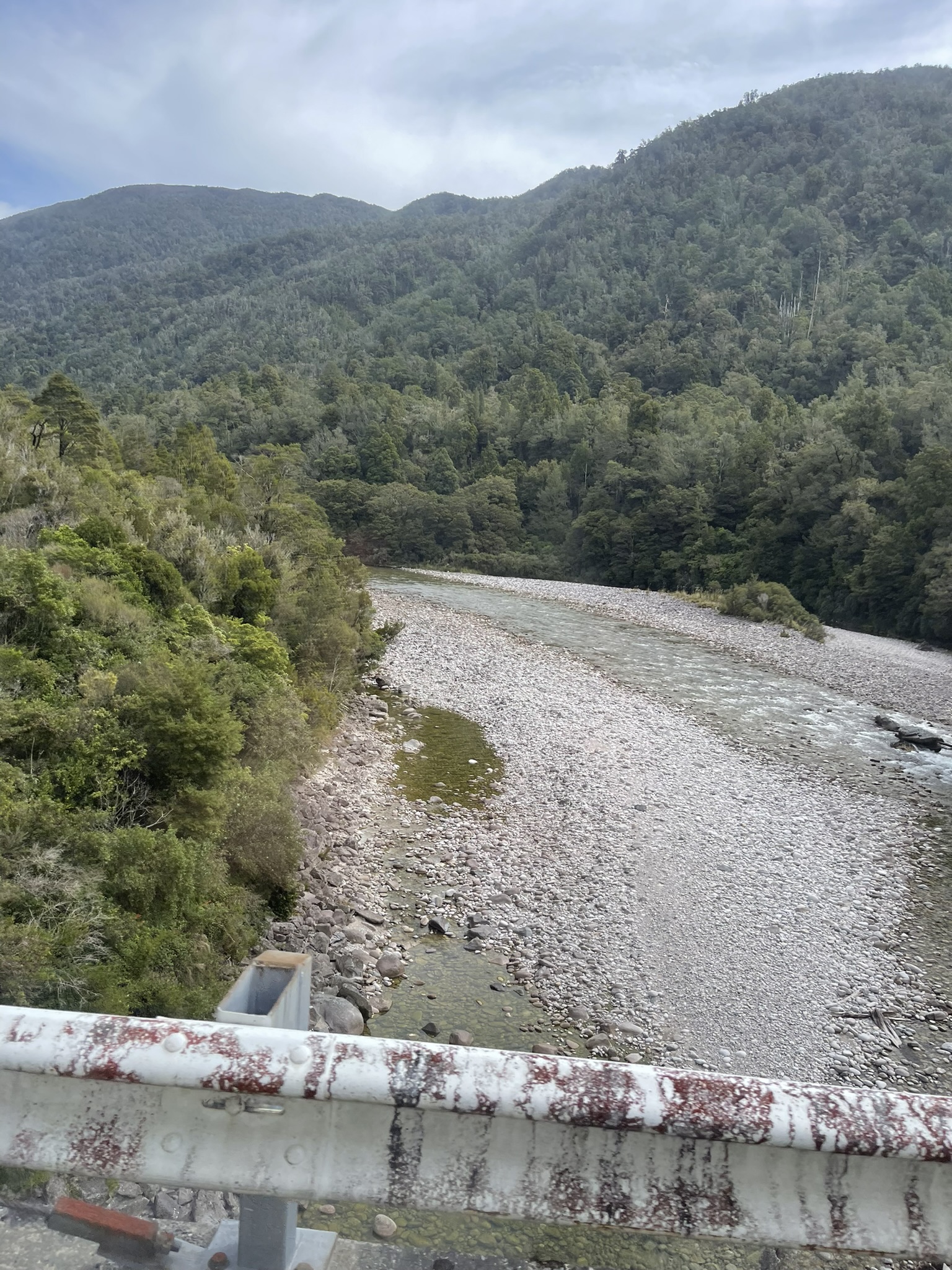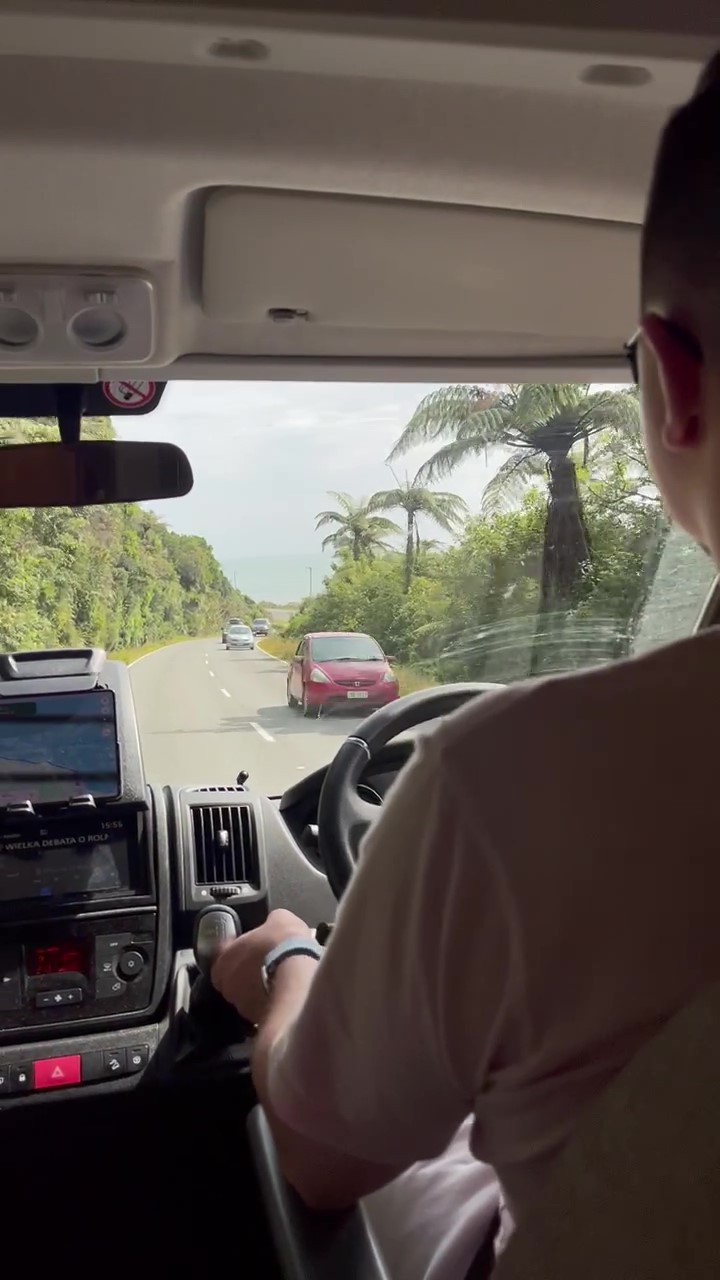 Było super, ale teraz ruszamy w stronę Morza Tasmana, w stronę Punakaiki Rocks. Krajobraz z każdym kilometrem staje się coraz bardziej surowy. Góry powoli ustępują miejsca wąskim dolinom, a powietrze zmienia zapach… czuć bliskość Morza Tasmana. Droga wije się między zielenią, rzekami i stromymi zboczami, aż w końcu pojawiają się pierwsze przebłyski morza. To jeden z tych momentów, kiedy wiesz, że jesteś już naprawdę blisko wybrzeża. To już minuty dzielą nas od „NALEŚNIKÓW” 🙂