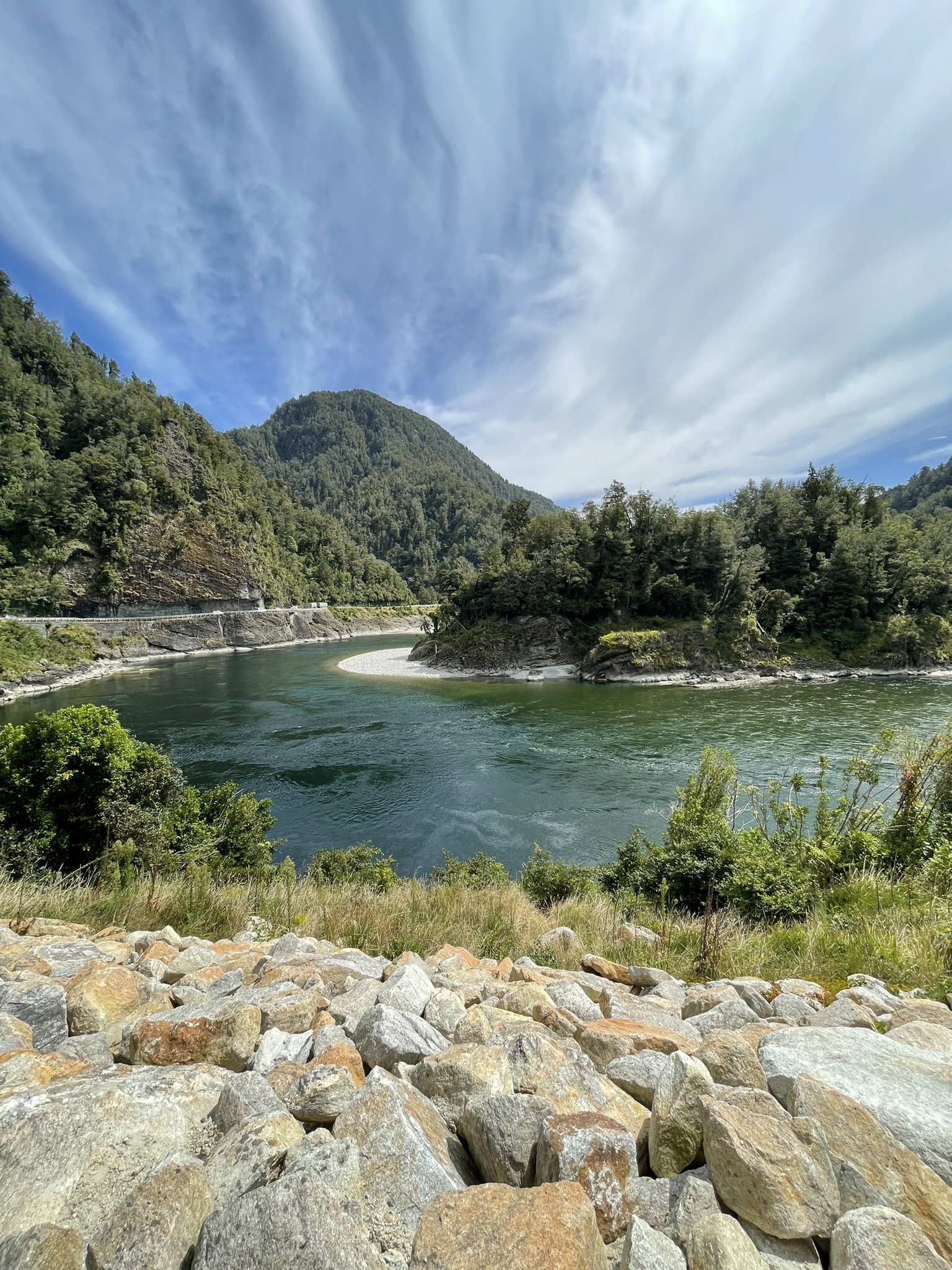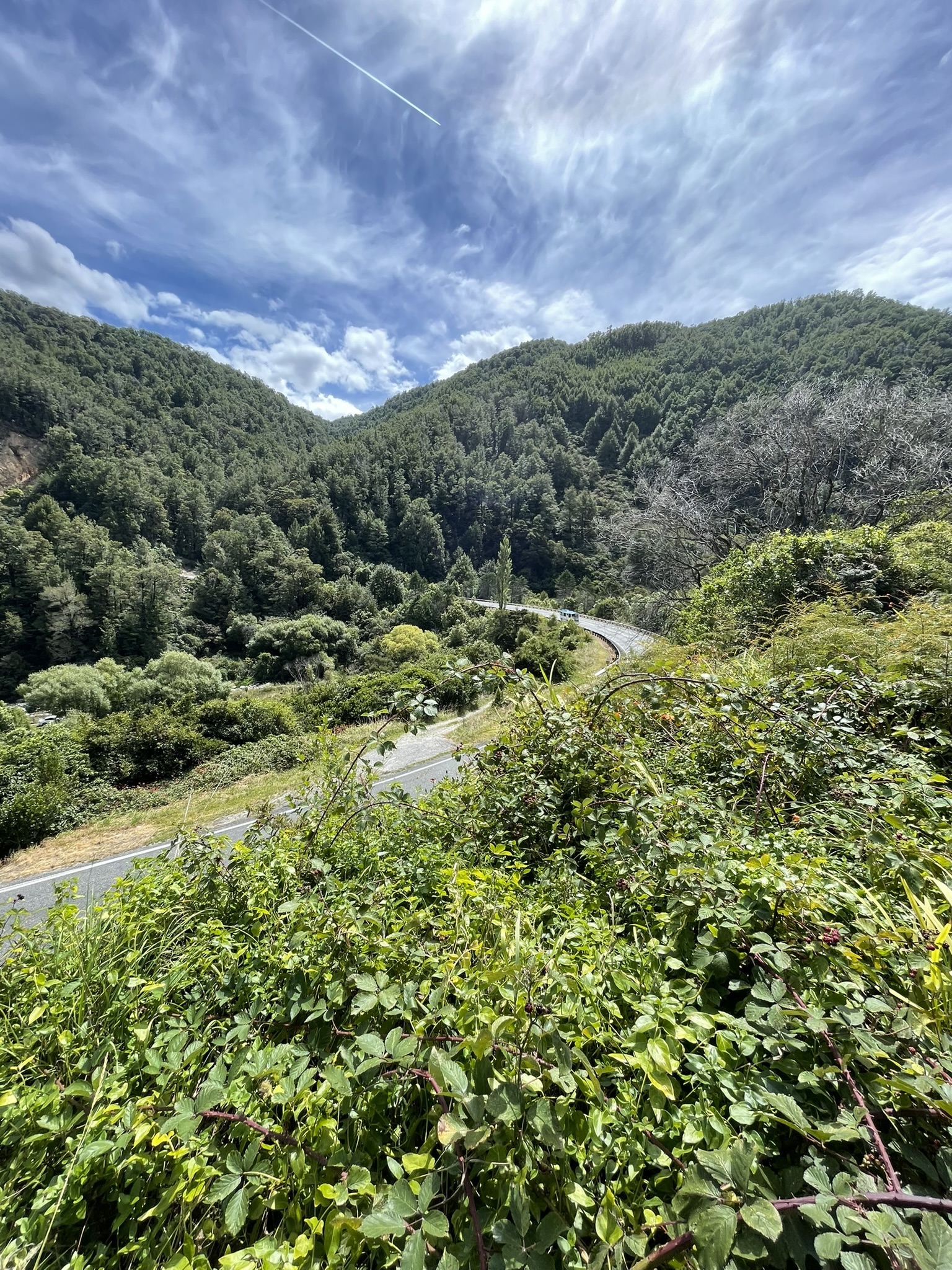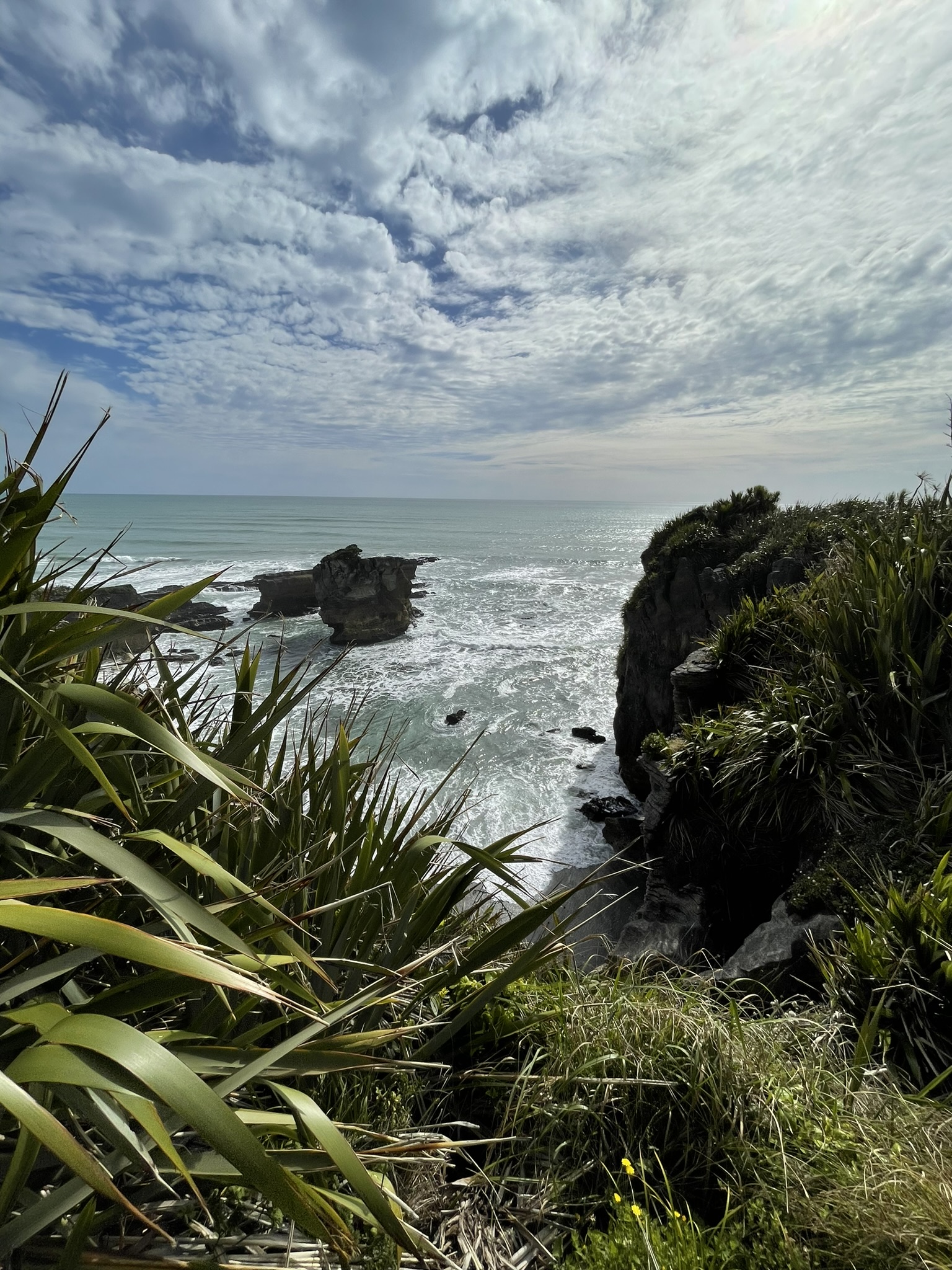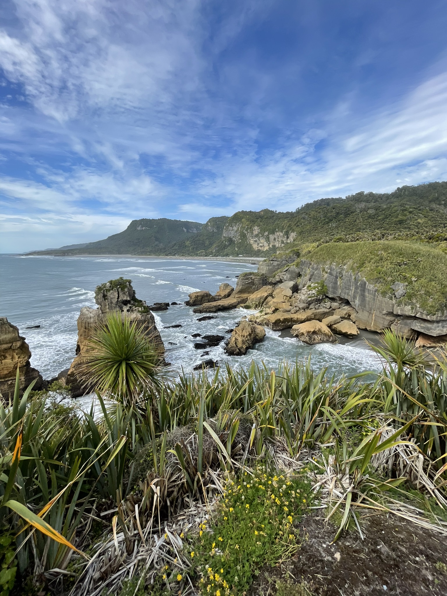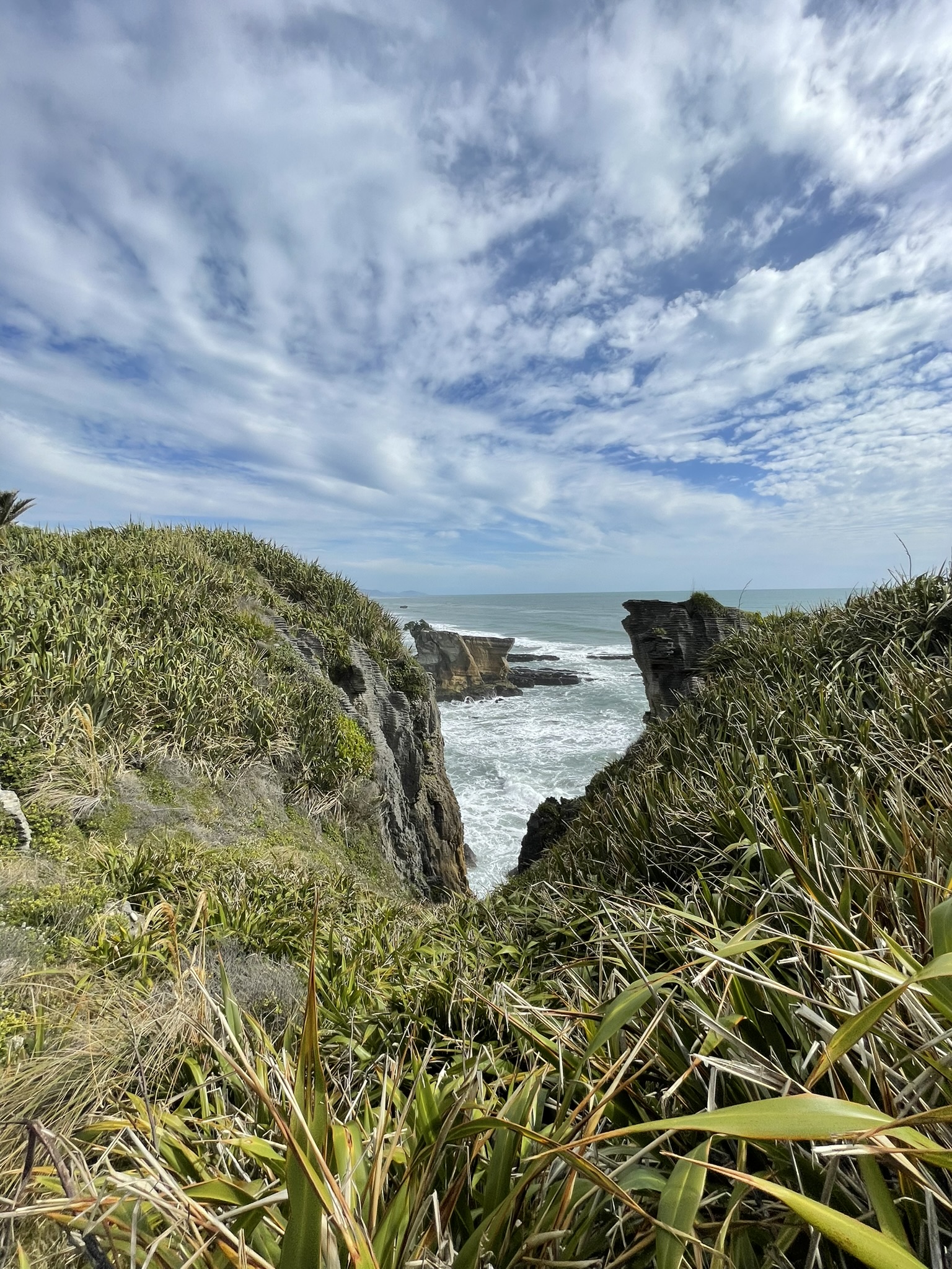 Było super, ale teraz ruszamy w stronę Morza Tasmana, w stronę Punakaiki Rocks. Krajobraz z każdym kilometrem staje się coraz bardziej surowy. Góry powoli ustępują miejsca wąskim dolinom, a powietrze zmienia zapach… czuć bliskość Morza Tasmana. Droga wije się między zielenią, rzekami i stromymi zboczami, aż w końcu pojawiają się pierwsze przebłyski morza. To jeden z tych momentów, kiedy wiesz, że jesteś już naprawdę blisko wybrzeża. To już minuty dzielą nas od „NALEŚNIKÓW” 🙂