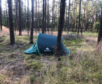 Tutaj skorzystałem z pilotażowego programu „Bushcraft i Surviwal„ [EDIT: obecnie program nazywa się „Zanocuj w lesie„], który uruchomiły Lasy Państwowe w latach 2019-2020. Wyznaczone zostały obszary leśne, w których można było nocować, jednak pod pewnymi warunkami: